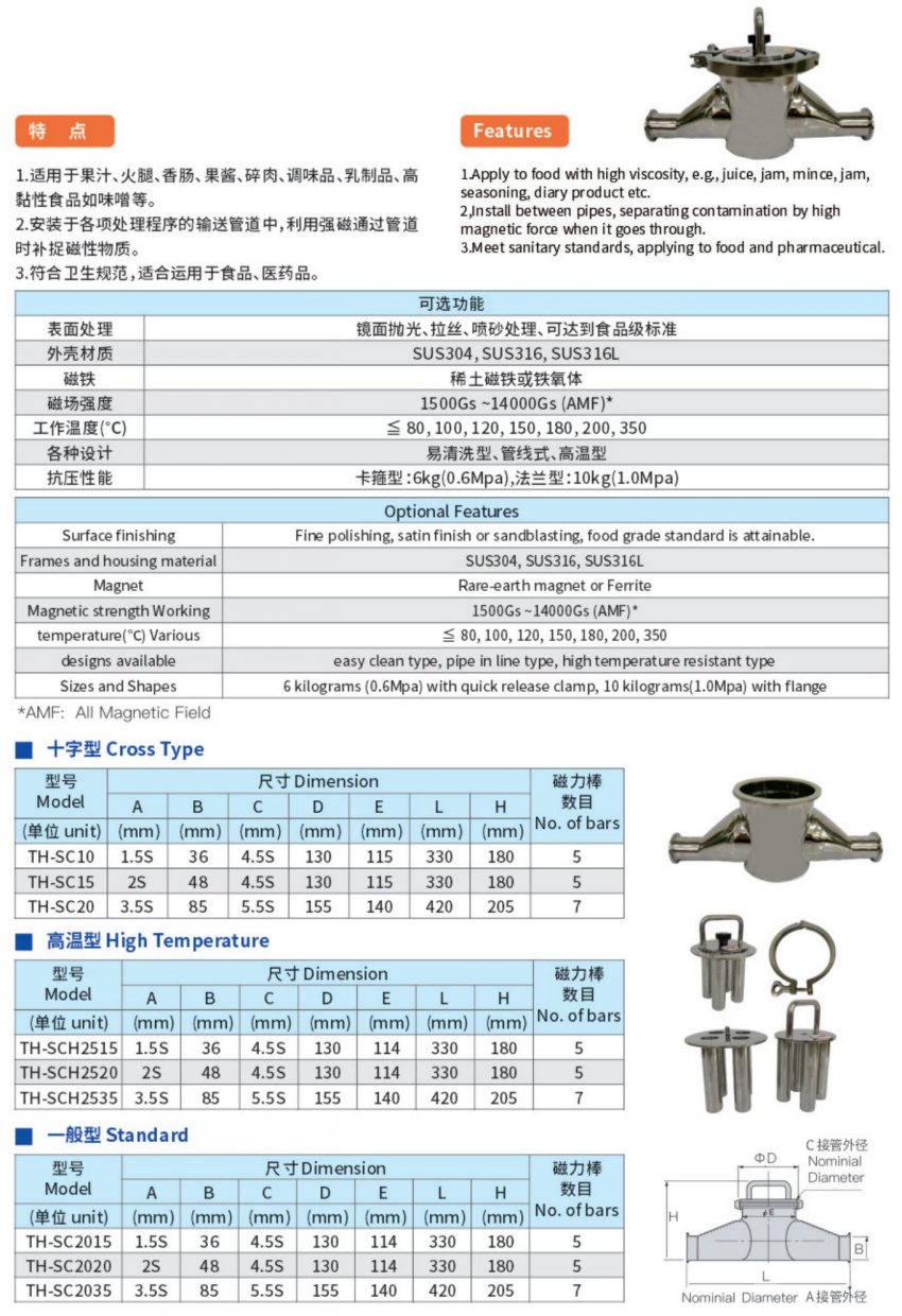 L型、直线管道磁性分离器