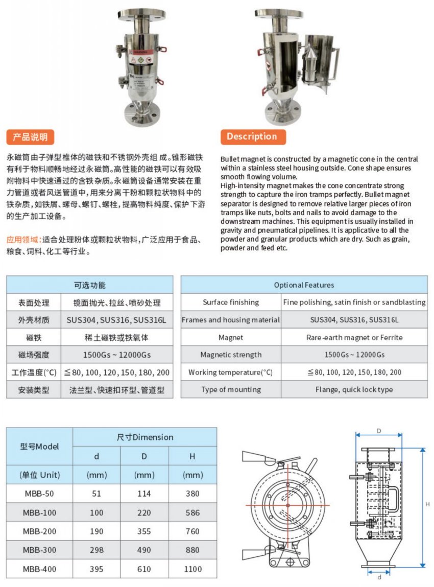 L型、直线管道磁性分离器